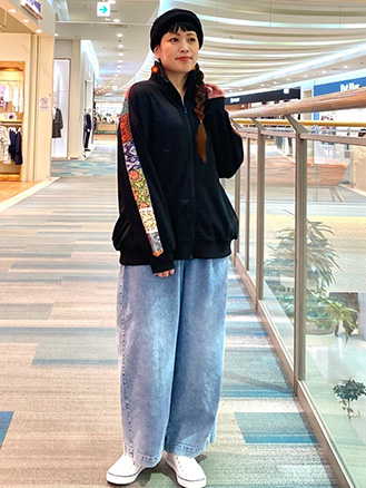 袖の無地ラインが全体を引き締めてくれます。